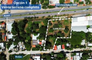 For sale: 3,648 m² lot located in Colonia El Marinero, Puerto Escondido, Oaxaca, with one of the best locations in the area — right on Federal Highway 200, the main road connecting the entire tourist corridor of the Oaxacan Coast. Its strategic location, high visibility, and constant traffic make it an excellent investment opportunity.