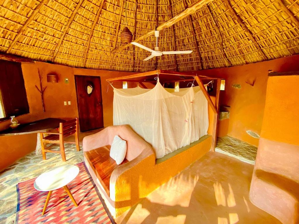 The property features: Two main palapas, spacious and built by artisans from Bajos de Xila, Oaxaca. The first palapa includes a fully equipped kitchen, living room, and dining area. The second palapa features a bar, stove, and laundry room, as well as an open space of approximately 40 m², ideal for a yoga studio, with polished concrete flooring and a beautiful ocean view.